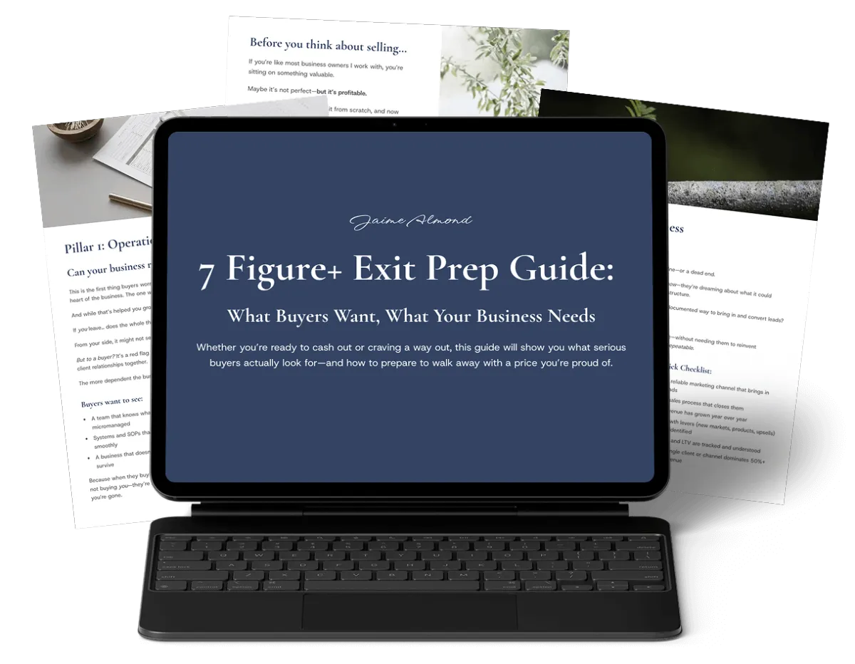 Inside, you’ll uncover what buyers actually care about (hint: it’s not just revenue), how to fix the blind spots that kill deals, and how to position your business for a clean, profitable exit—whenever you’re ready.